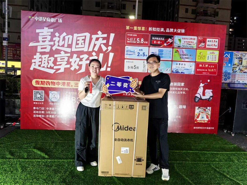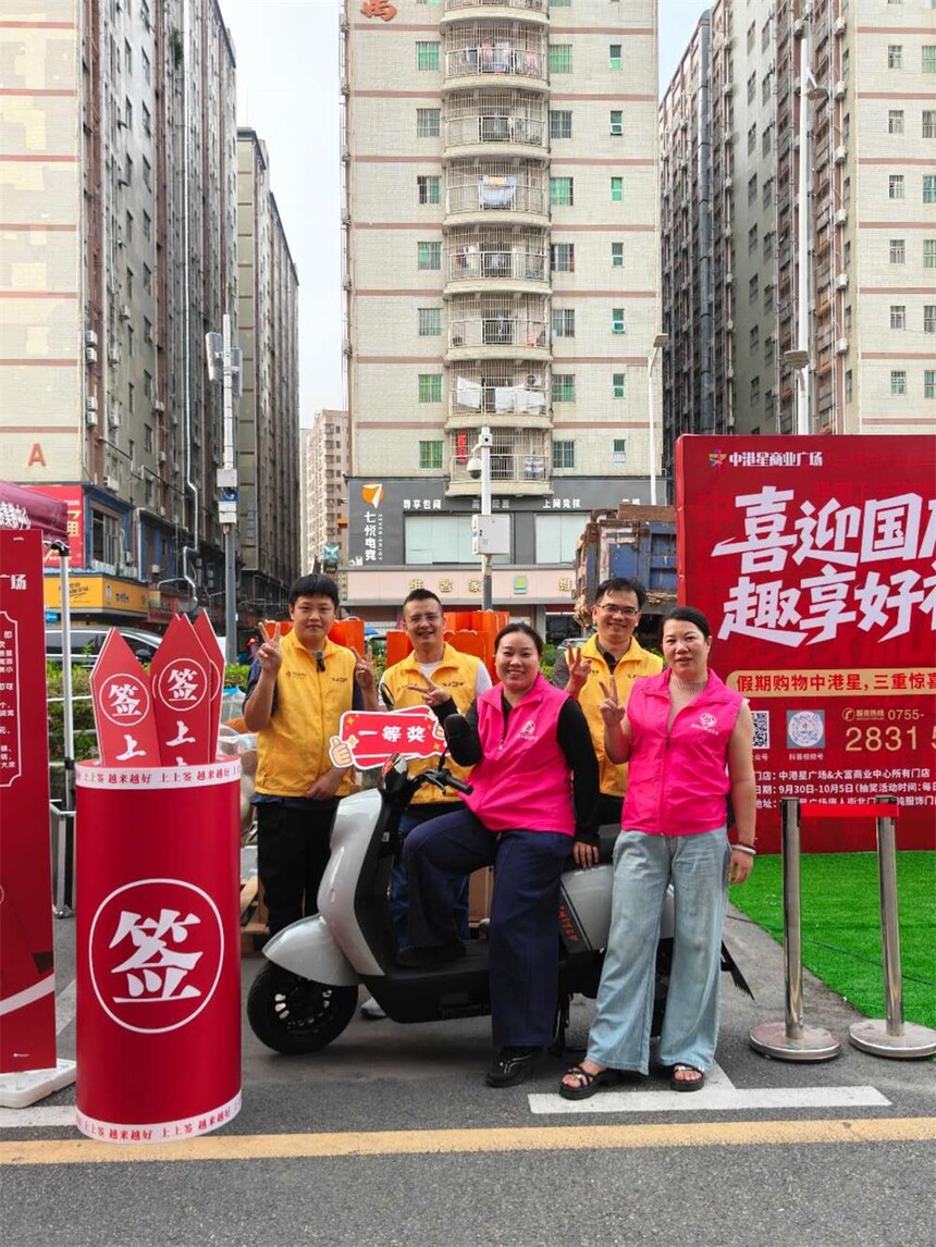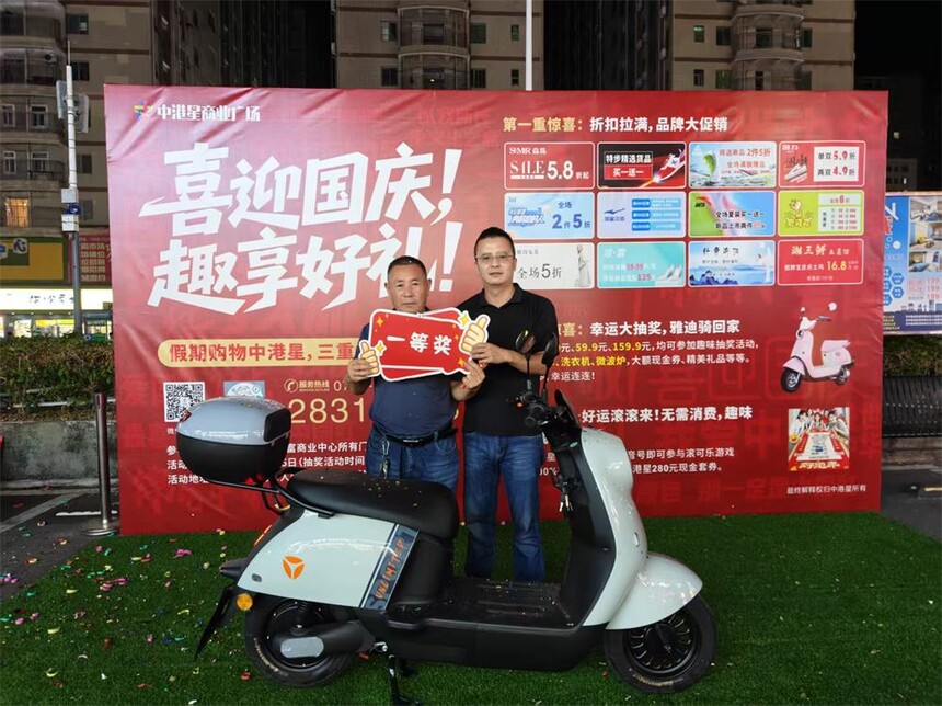 中港星广场“喜迎国庆,趣享好礼”活动国庆黄金周,中港星广场化身欢乐消费主场!潮流品牌焕新登场,时尚服饰、百搭鞋履琳琅满目,网红美食街香飘四溢。中港星广场更是联动多家商户推出折上折狂欢盛宴,超值折扣叠加惊喜满减,吃喝玩乐一站式畅享。消费还可以在活动现场进行抽奖,最高可以冲击雅迪电动车大奖,这个假期在中港星广场购物的顾客们都是满载而归。 随着各项终极大奖各落其主,幸运儿们满载喜悦离场,中港星广场“喜迎国庆,趣享好礼”活动也缓缓落下帷幕